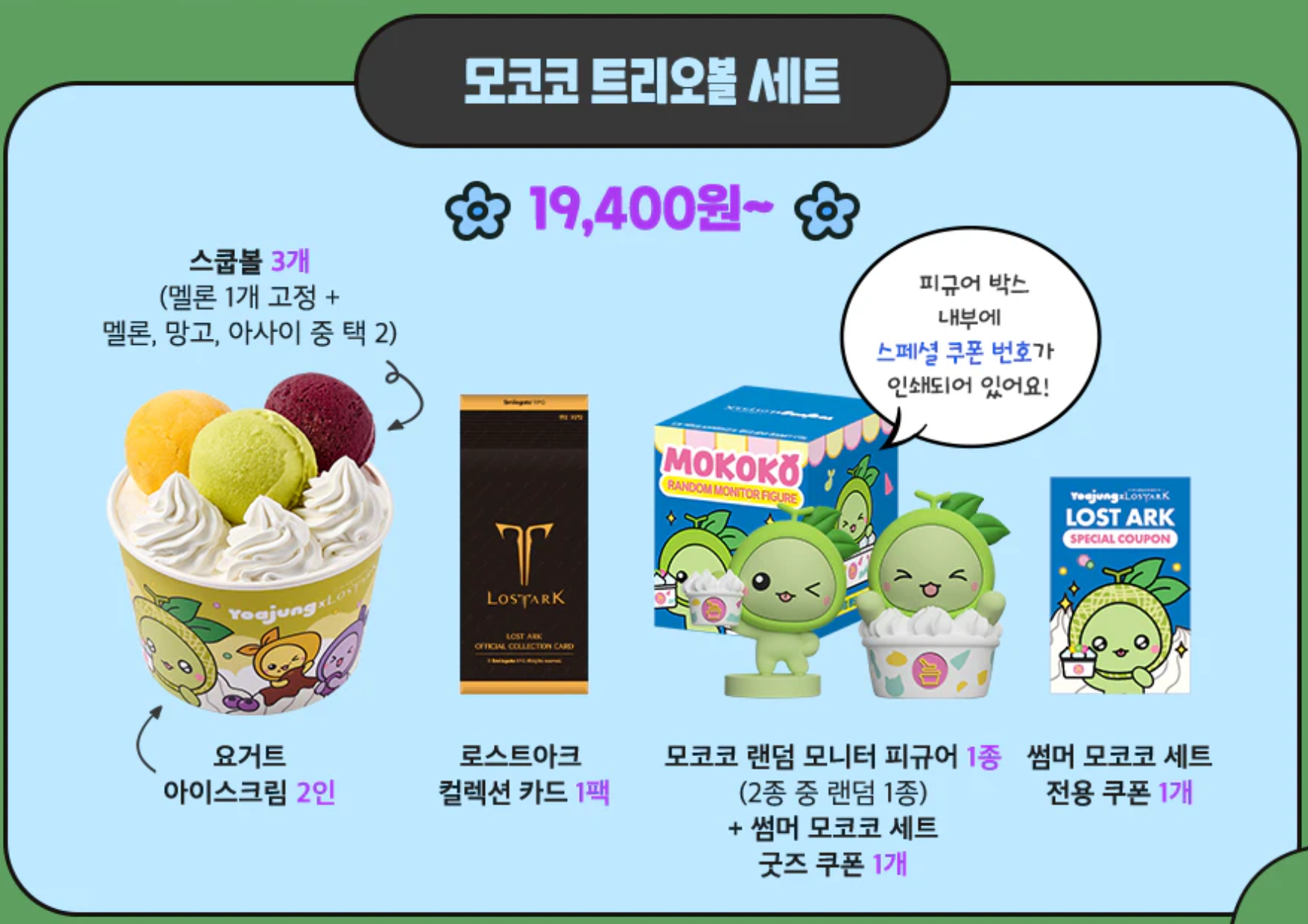 이번 로스트아크 × 요아정 콜라보에서 저는 모코코 트리오볼 세트를 선택했어요.